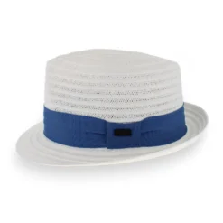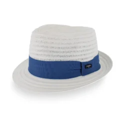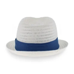Guerra 1855 of Italy has taken the classic look of a trilby hat to a whole new level by using a strong textile paper and creating a flexible open weave pattern throughout the body of the Belfry Benedetto. The casual linear pattern of the weave is balanced by the formal grosgrain hat band. Lightweight and airy, this trilby style offers all-day wearable comfort on the warmest days. Offered in two classic colors, the Benedetto brings an elegance to both casual and dress attire.Â