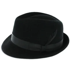 This sophisticated trilby hat is crafted with a blend of wool felt and cashmere for a luxuriously soft feel. The hat’s classic shape is adorned with a modified teardrop crown and a smooth grosgrain ribbon hat band with a detachable feather accent. Furthermore, the interior is lined with a moisture-wicking German inner band for long-lasting comfort. The Belfry Coltrane is a product of American expertise and skill