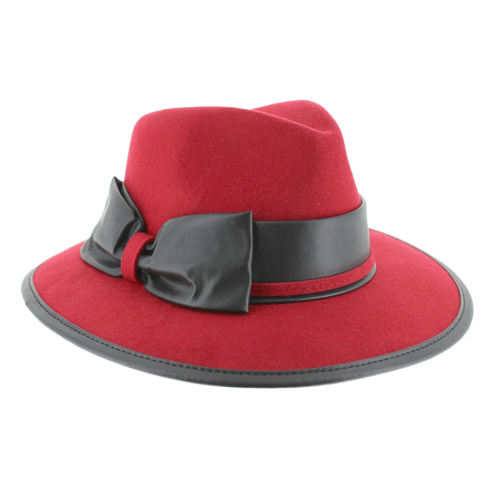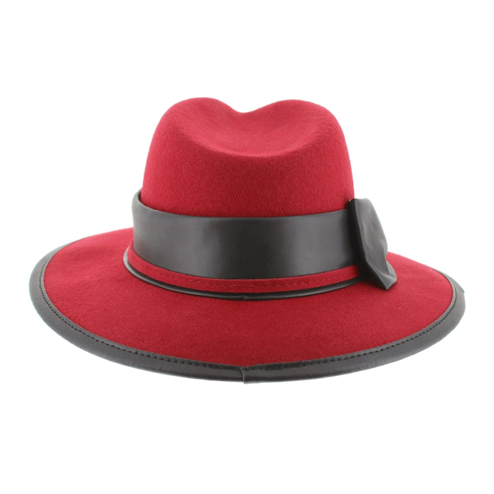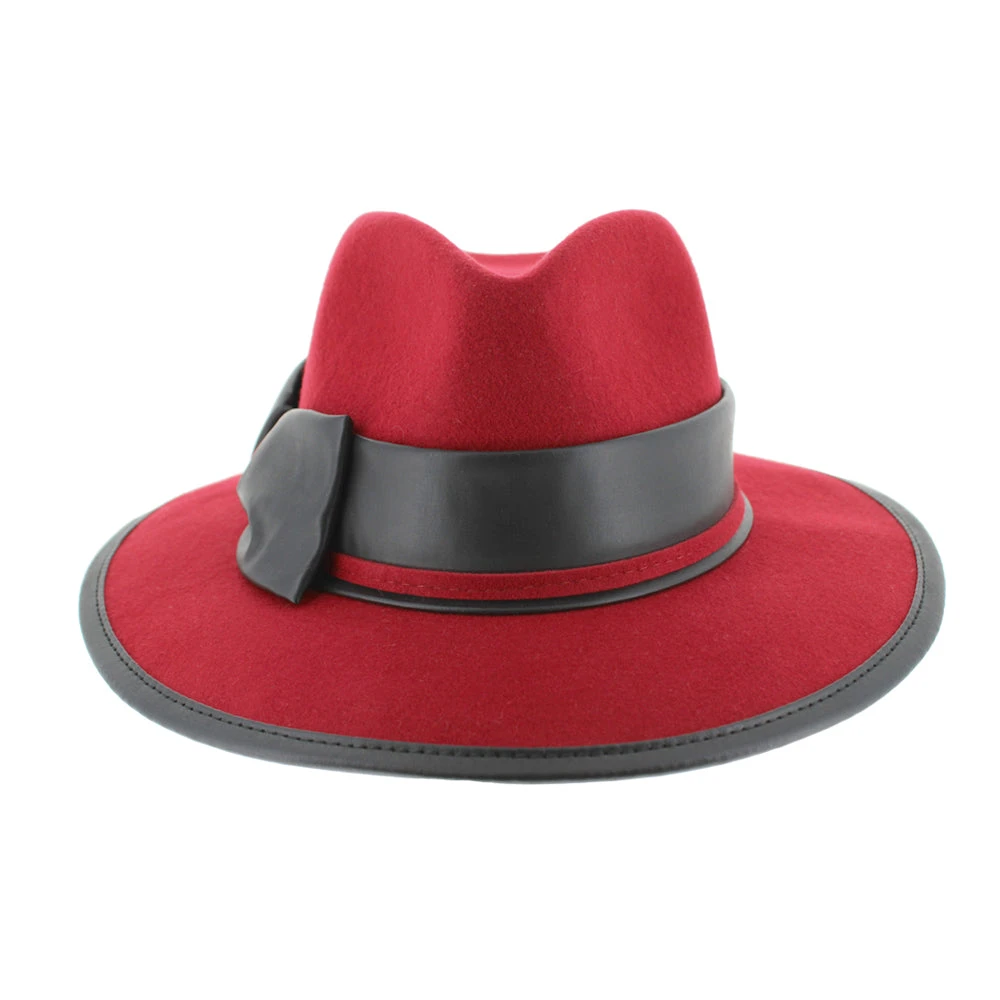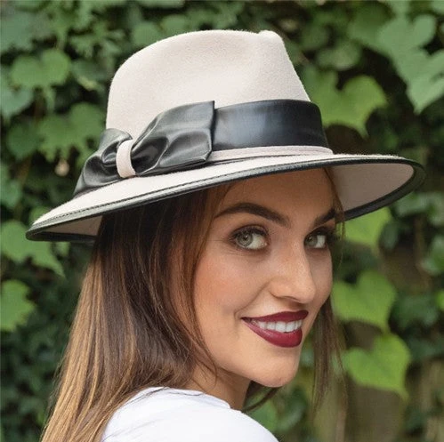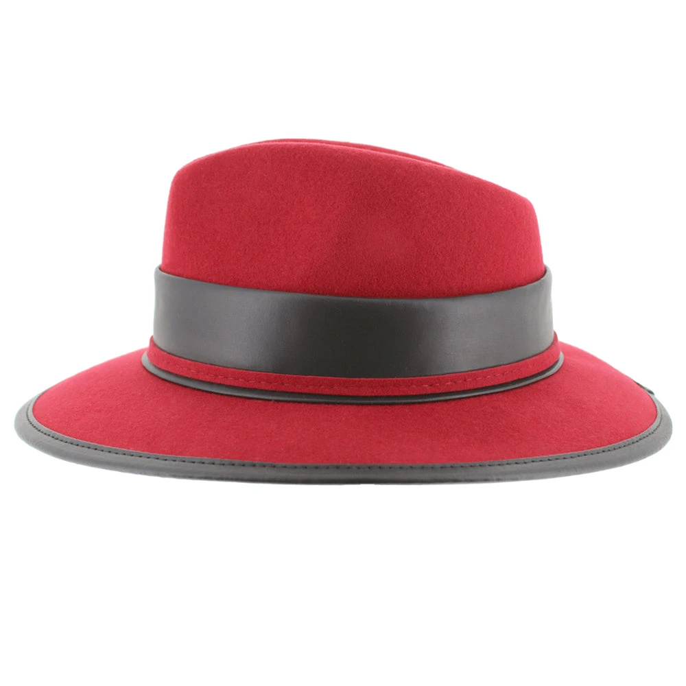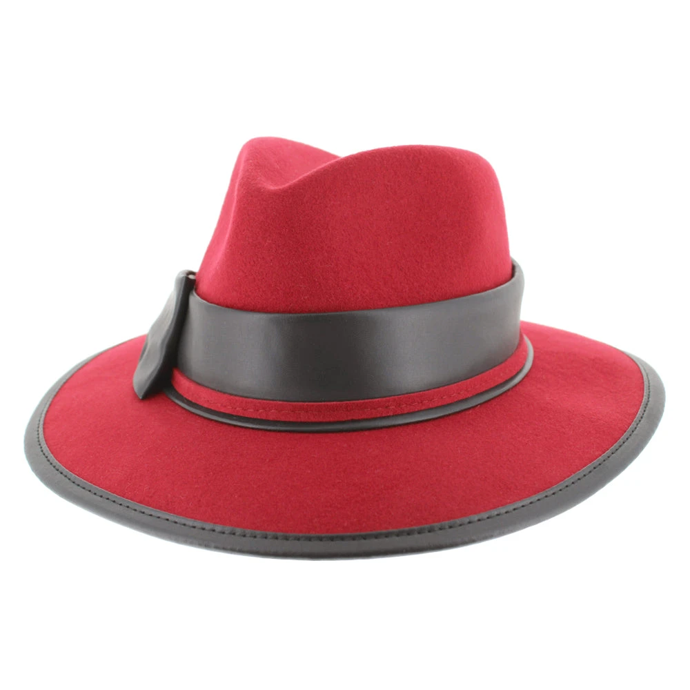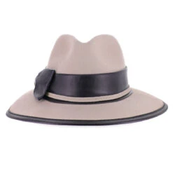 Coming to us from Complit of Italy, the Belfry Cori is a modern safari style made of 100% wool and richly appointed with a leather bow and edge trim. The unlined interior offers a drawstring inner band for a custom fit.