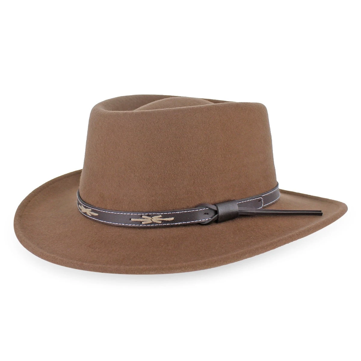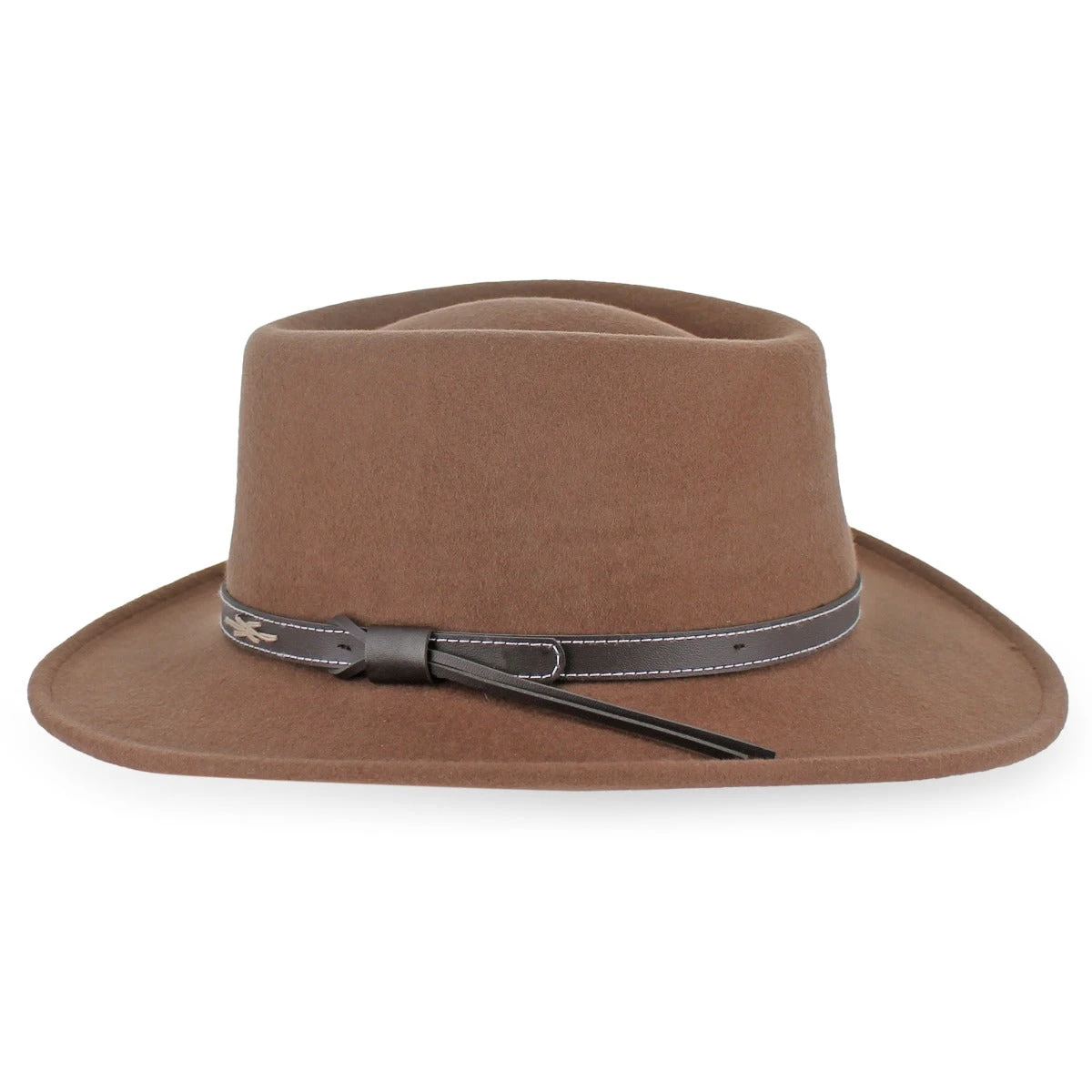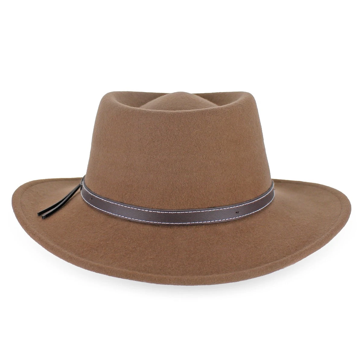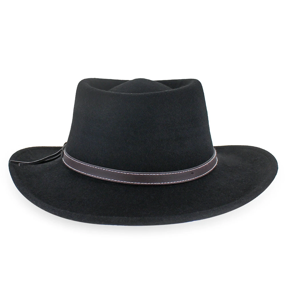 Take the Belfry Garner on your next trek into the great outdoors. This handsome western style is crafted from 100% wool felt that is durable and maintains its shape. It packs easily with no worries of wrinkles or creases.  Â