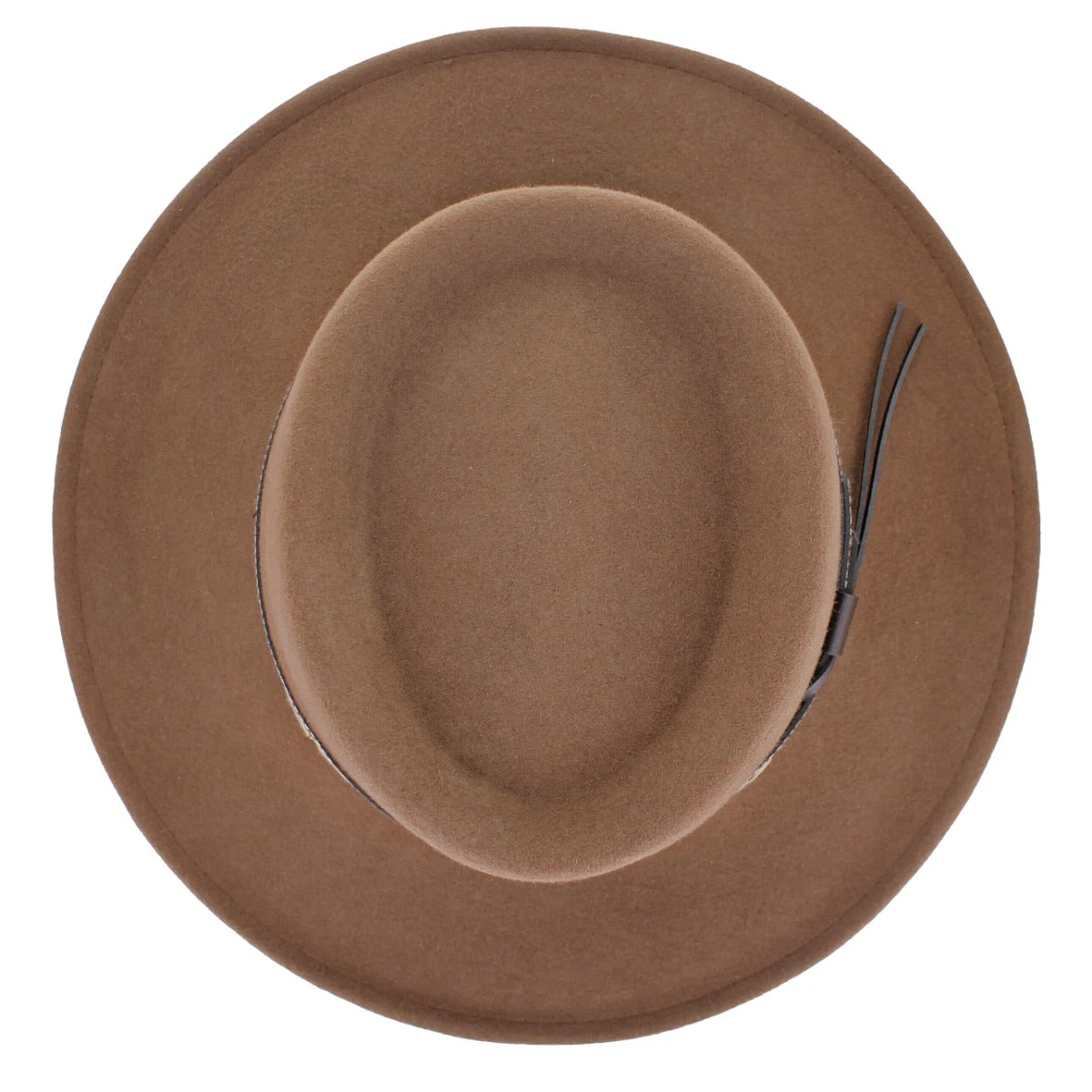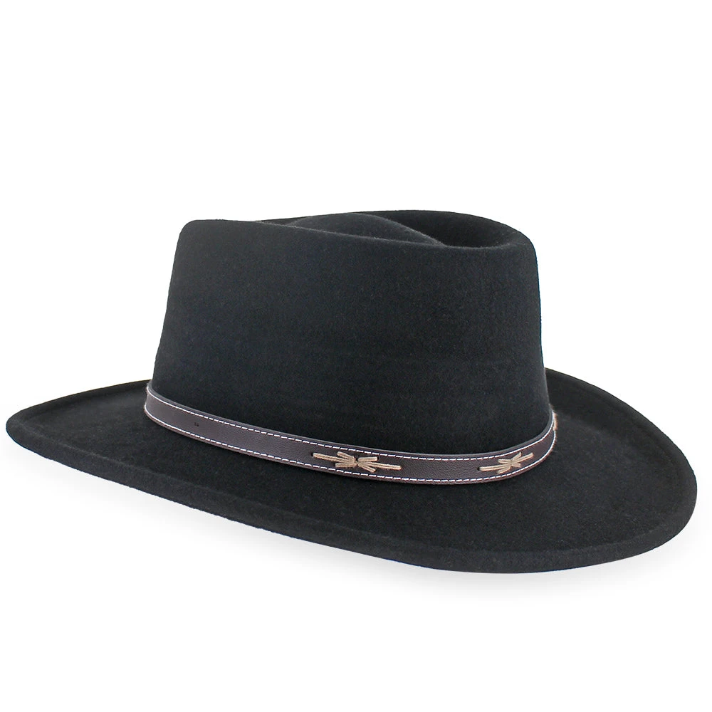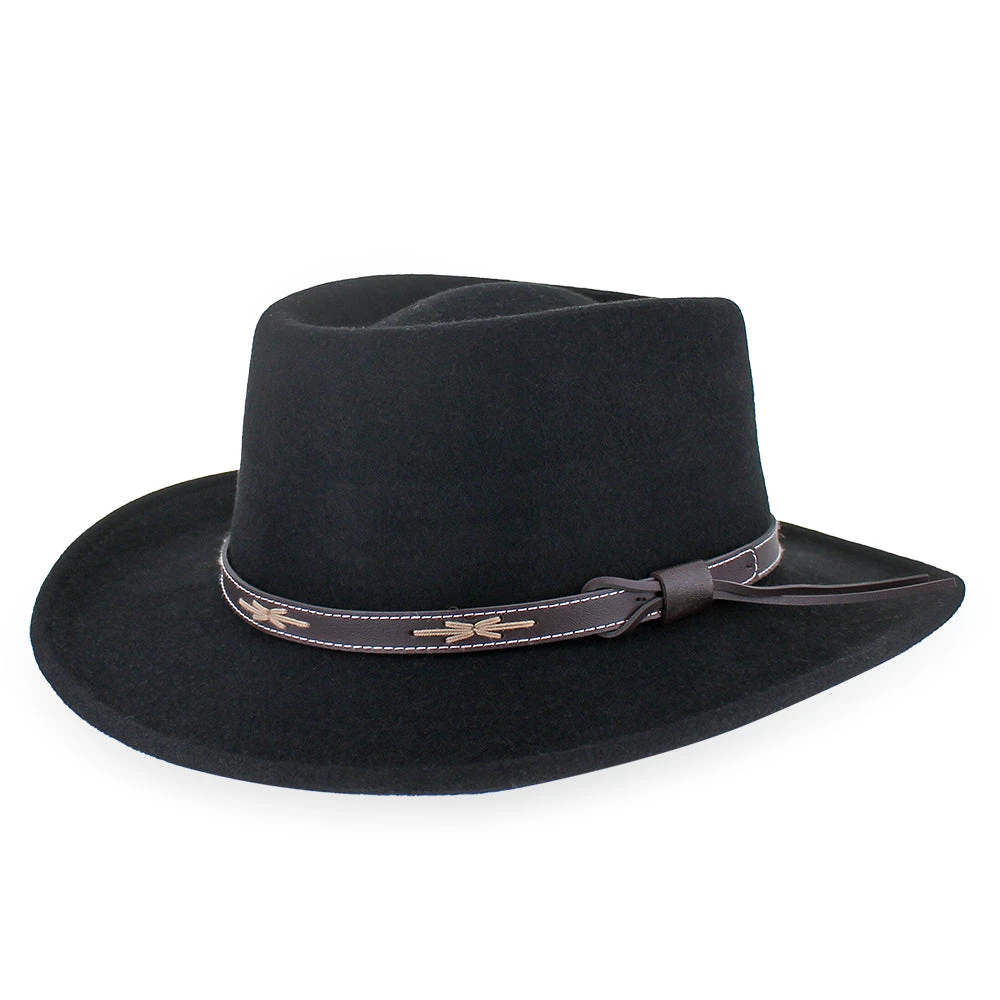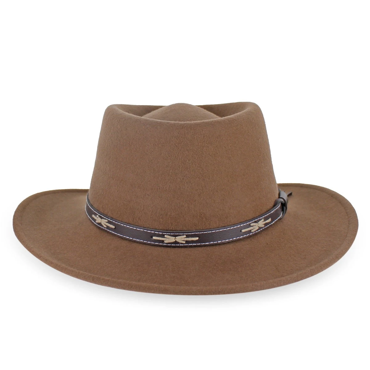 Take the Belfry Garner on your next trek into the great outdoors. This handsome western style is crafted from 100% wool felt that is durable and maintains its shape. It packs easily with no worries of wrinkles or creases.  Â