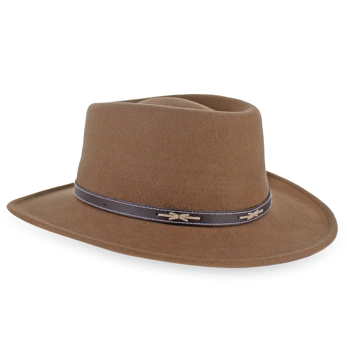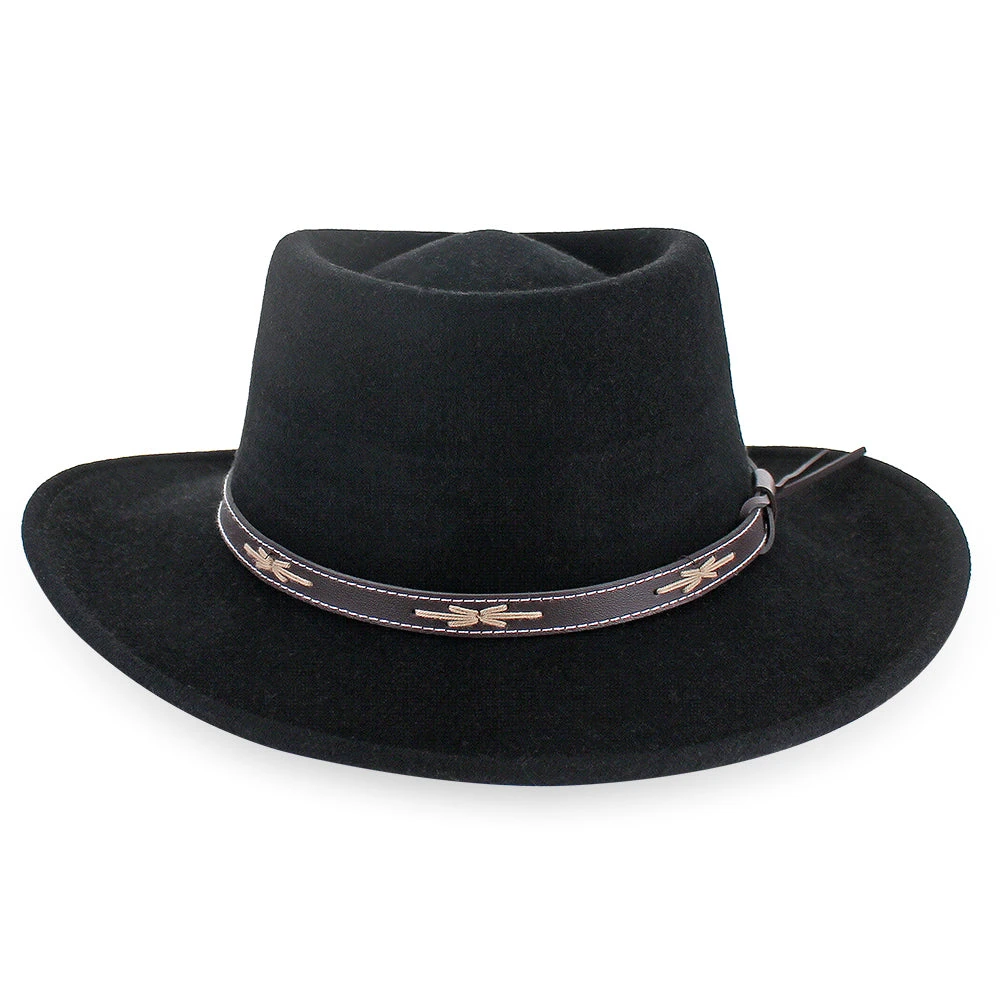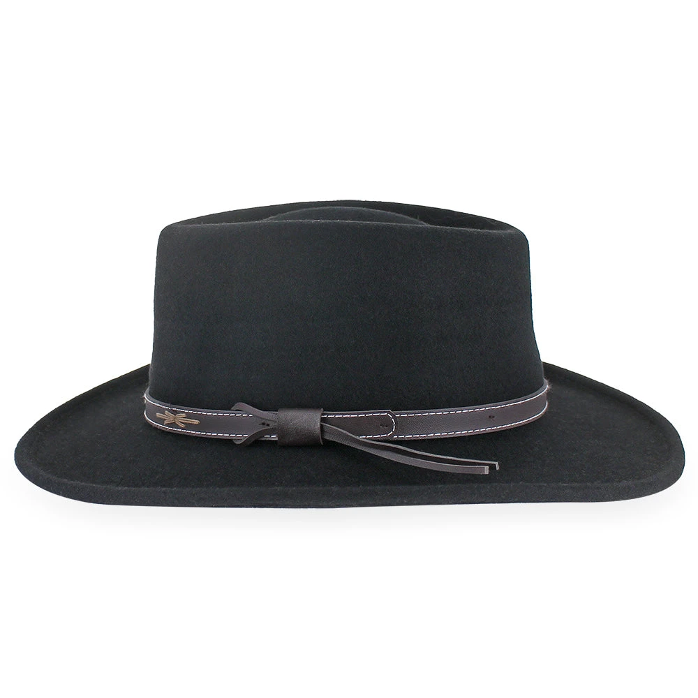 Take the Belfry Garner on your next trek into the great outdoors. This handsome western style is crafted from 100% wool felt that is durable and maintains its shape. It packs easily with no worries of wrinkles or creases.  Â