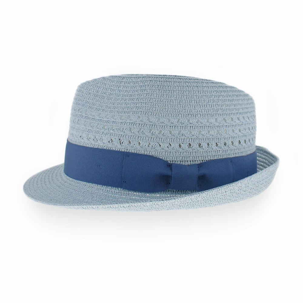 The Belfry Justin is a trilby style made of lightweight and durable Toyo Straw. It is flexible and retains its shape for worry-free travel.