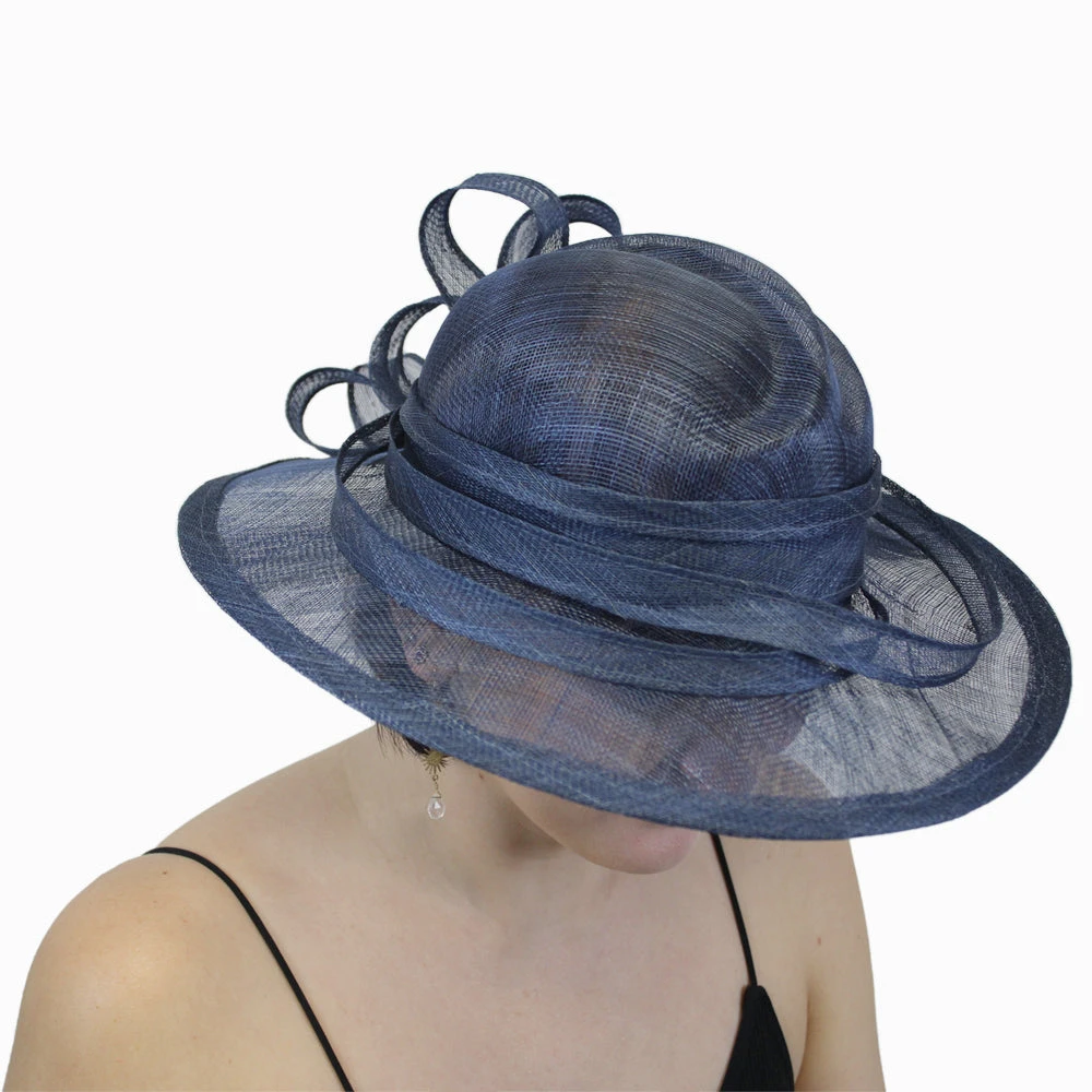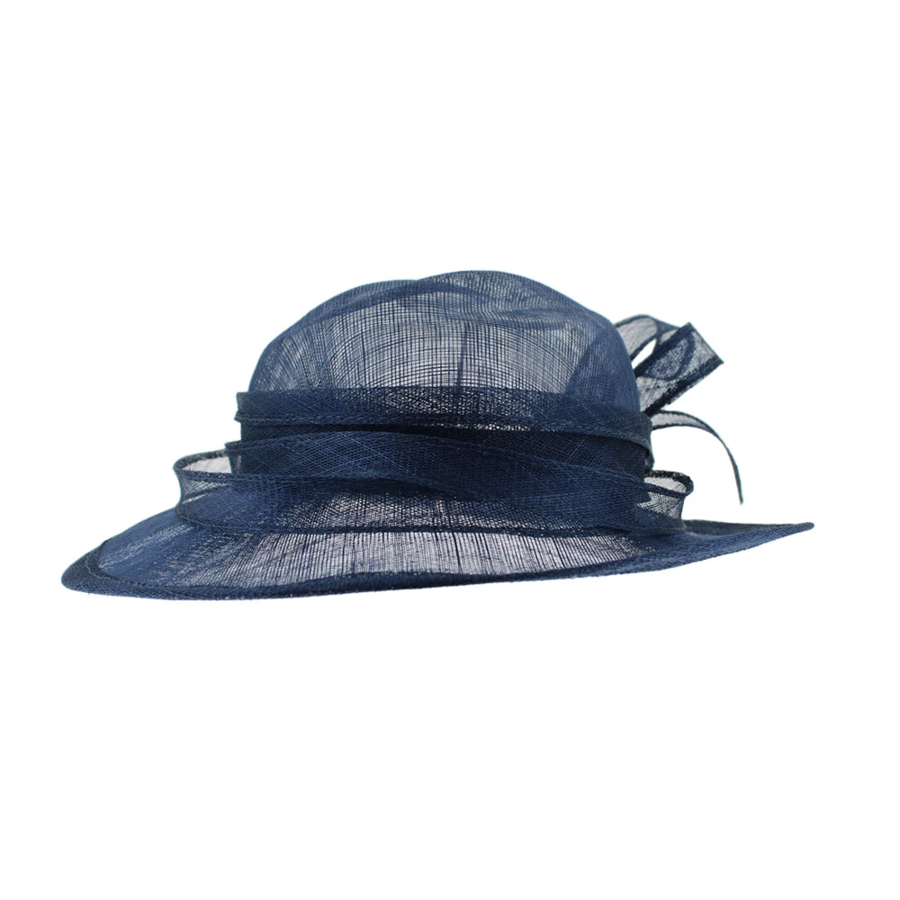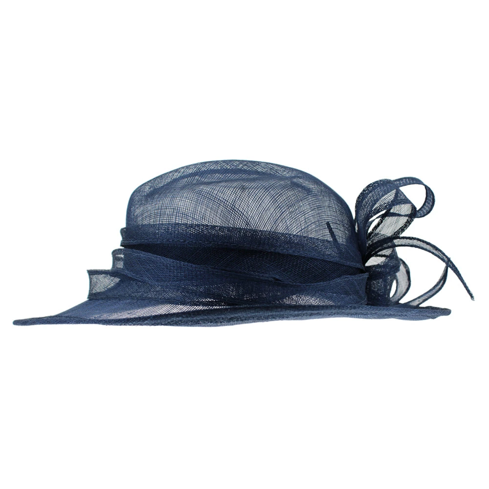 Designed by Complit Hats of Italy, the Belfry Lia creates instant interest with its asymmetrical brim and millinery crown. Made of lightweight sinamay, the Lia is dyed a soft, rich blue and adorned with a hand-pleated sinamay hat band and bow. Two sinamay ribbons circle the crown for a touch of graceful artistry.
