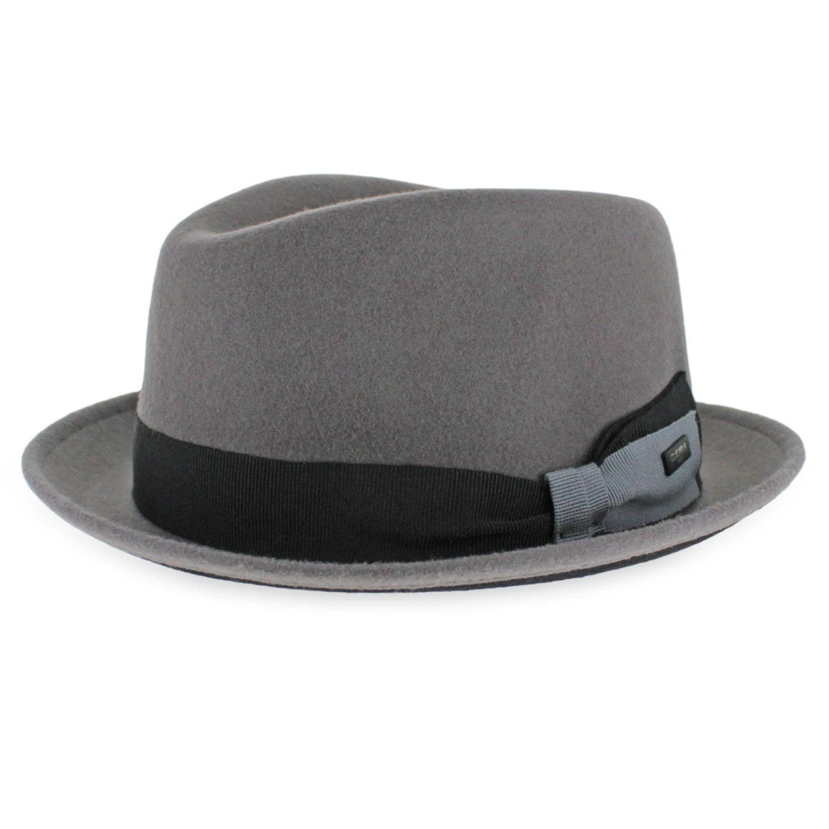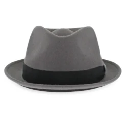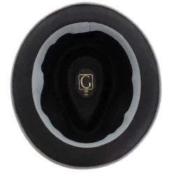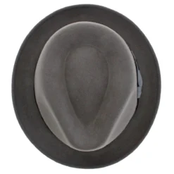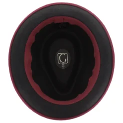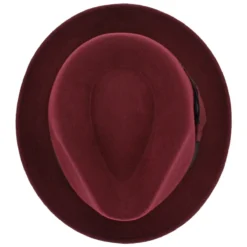 Guerra 1855 of Italy has created the Belfry Longo, a stylish, modern fedora crafted with 100% Italian wool with a brushed texture. Its teardrop crown is distinct and the short brim has a black under-lining that stands out. Offered in a variety of colors, the Longo has a distinctive color blocked hat band that is finished with a tilted bow. The interior is trimmed with an absorbent inner band that allows for all-day wearing comfort.