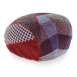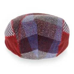This modern patchwork flat cap was designed to highlight the personal style of the wearer, with its linear panels and zigzag topstitched seams. Deep maroons mixed with blues and beige are blended in varied patterns for a dimensional look. Made of a heavier cotton blend, the Massimo is a cross-seasonal cap that will wear comfortably from spring to fall.
