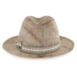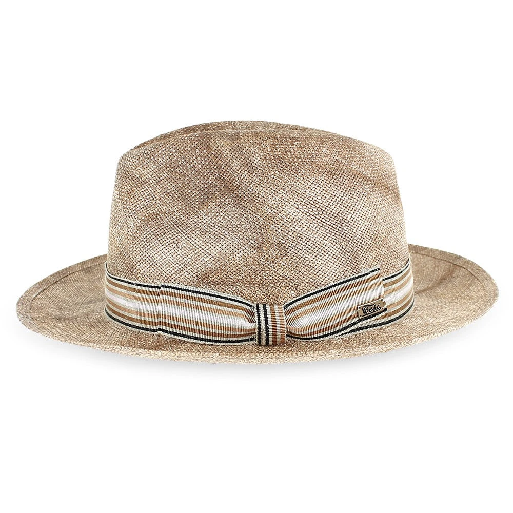 Designed by Tesi Hats of Italy, the Belfry Mirco is a contemporary fedora made of premium Toyo straw that has been hand dyed in a dappled brown pattern. The Mirco is lightweight and comfortable in warm weather. It has a classic silhouette with a relaxed look that will complement most warm weather attire.