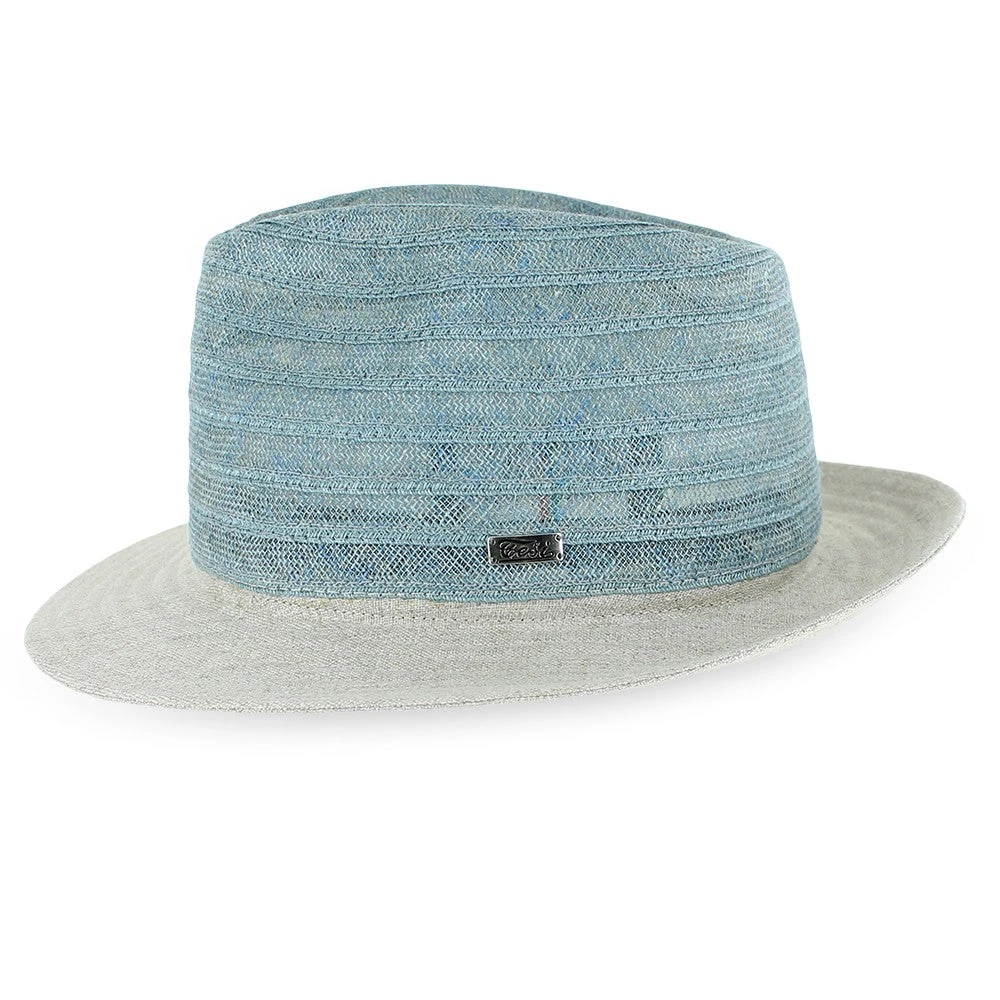 Designed by Tesi Hats of Italy, the Belfry Pascal is an ultra-lightweight fedora made of the finest Italian linen that has been braided into alternating rows of intricate linear lines. The pre-snapped, solid linen brim features rows of precise top stitching to maintain its shape.Â