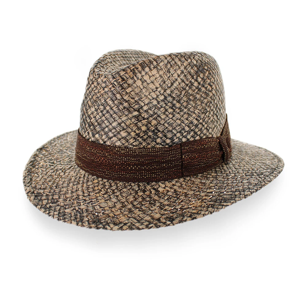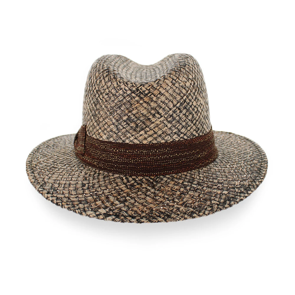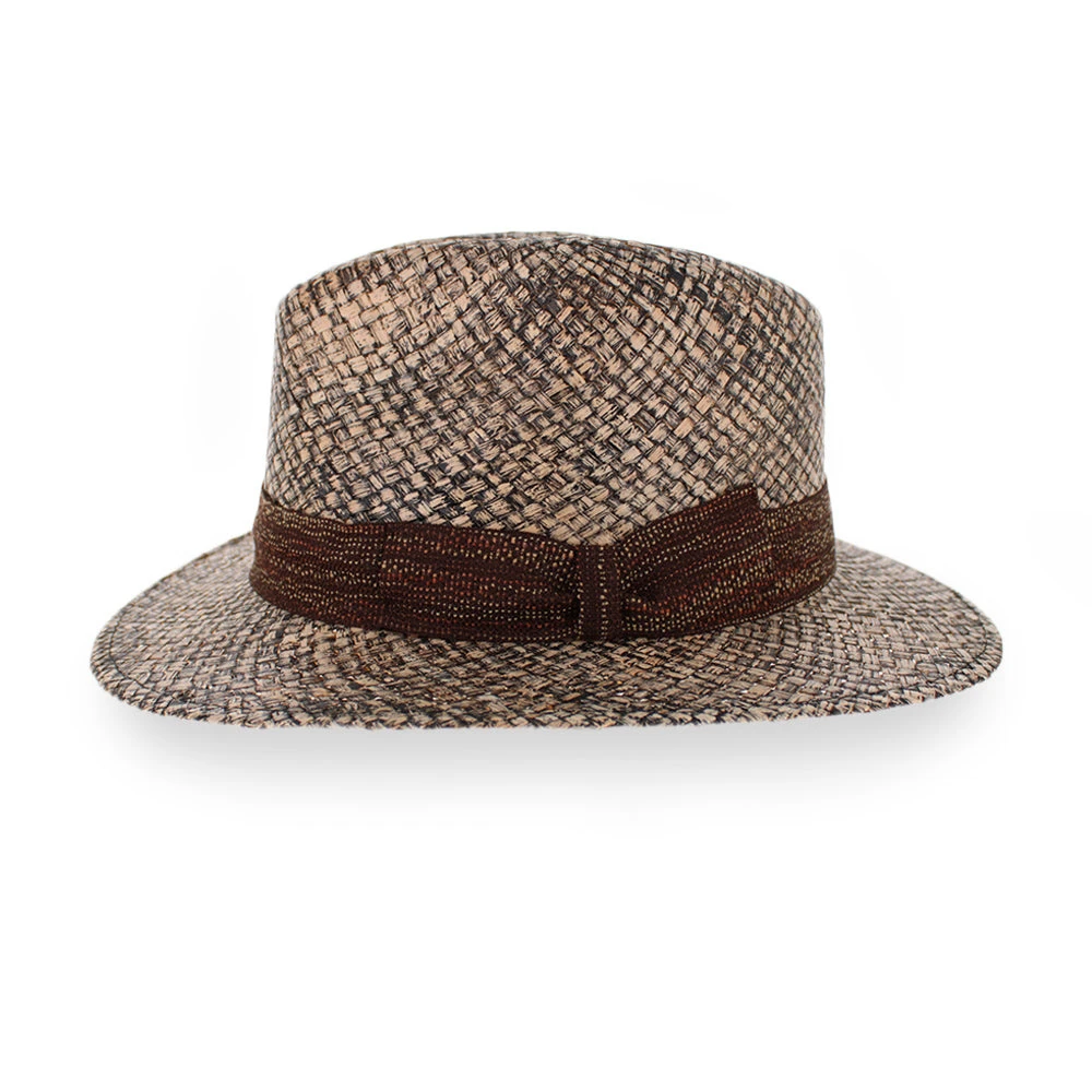 Created by Sorbatti Hats of Italy, the Belfry Pirlo is an on-trend design, woven from 100% natural straw that is has been finished with a diluted black-wash finish for a distressed look. The woven brown hat band is laced with adobe rust and light brown threading that culminates in a single tilted bow, adding even more modern style to this amazing hat!
