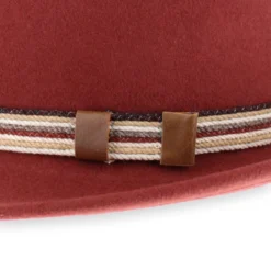 Trim and stylish, this American-made stingy brim fedora is made of lightweight wool felt that is soft, flexible and retains its shape, making it a perfect choice for travel. A corded leather hat band surrounds the crown for an updated and modern touch. Pair this sporty fedora with all sorts of casual attire. Made in the USA, the Reese displays the finest of American craftsmanship.Â