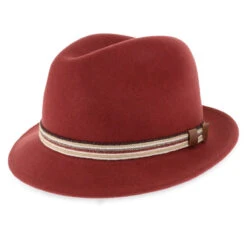 Trim and stylish, this American-made stingy brim fedora is made of lightweight wool felt that is soft, flexible and retains its shape, making it a perfect choice for travel. A corded leather hat band surrounds the crown for an updated and modern touch. Pair this sporty fedora with all sorts of casual attire. Made in the USA, the Reese displays the finest of American craftsmanship.Â
