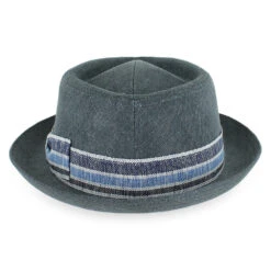 The pork pie hat is an iconic favorite of hat enthusiasts, and the Belfry Reno does not disappoint! Designed by Sorbatti Hats of Italy, the Reno is made of 100% Italian linen that has been firmly blocked to hold its shape. This classic diamond crown pork pie features a linen hat band in complementary colors of navy, ocean blue and white. The Reno retains its shape, allowing for worry-free packing and travel.