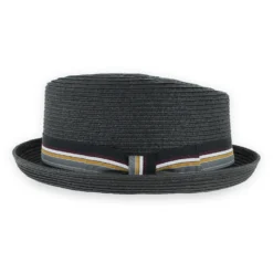 Cool, casual and affordable, the Belfry Stripe Jazz is a classic pork pie made of braided Toyo straw, a lightweight and durable material. This hat has a classic look that is enhanced with its bold striped club hat band and diamond crown. Both flexible and packable, the Jazz retains its shape and makes a perfect travel hat.