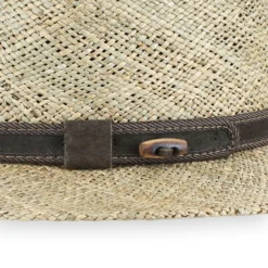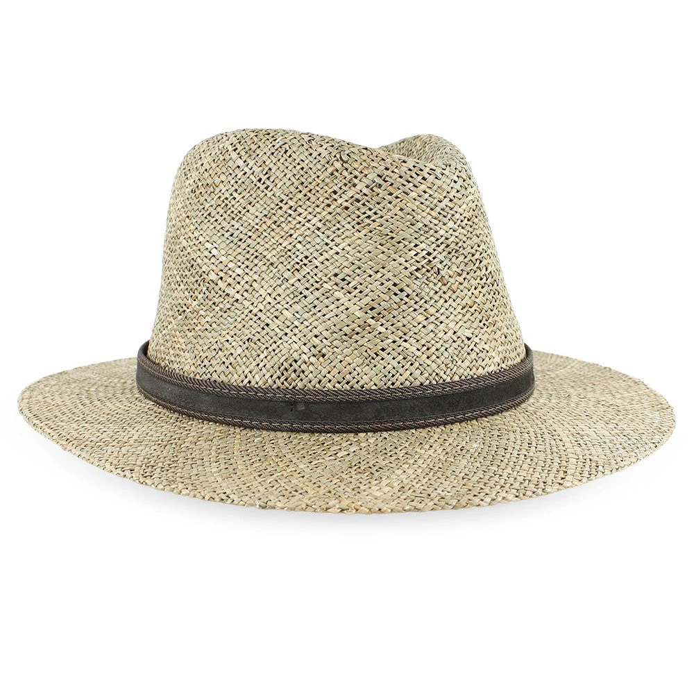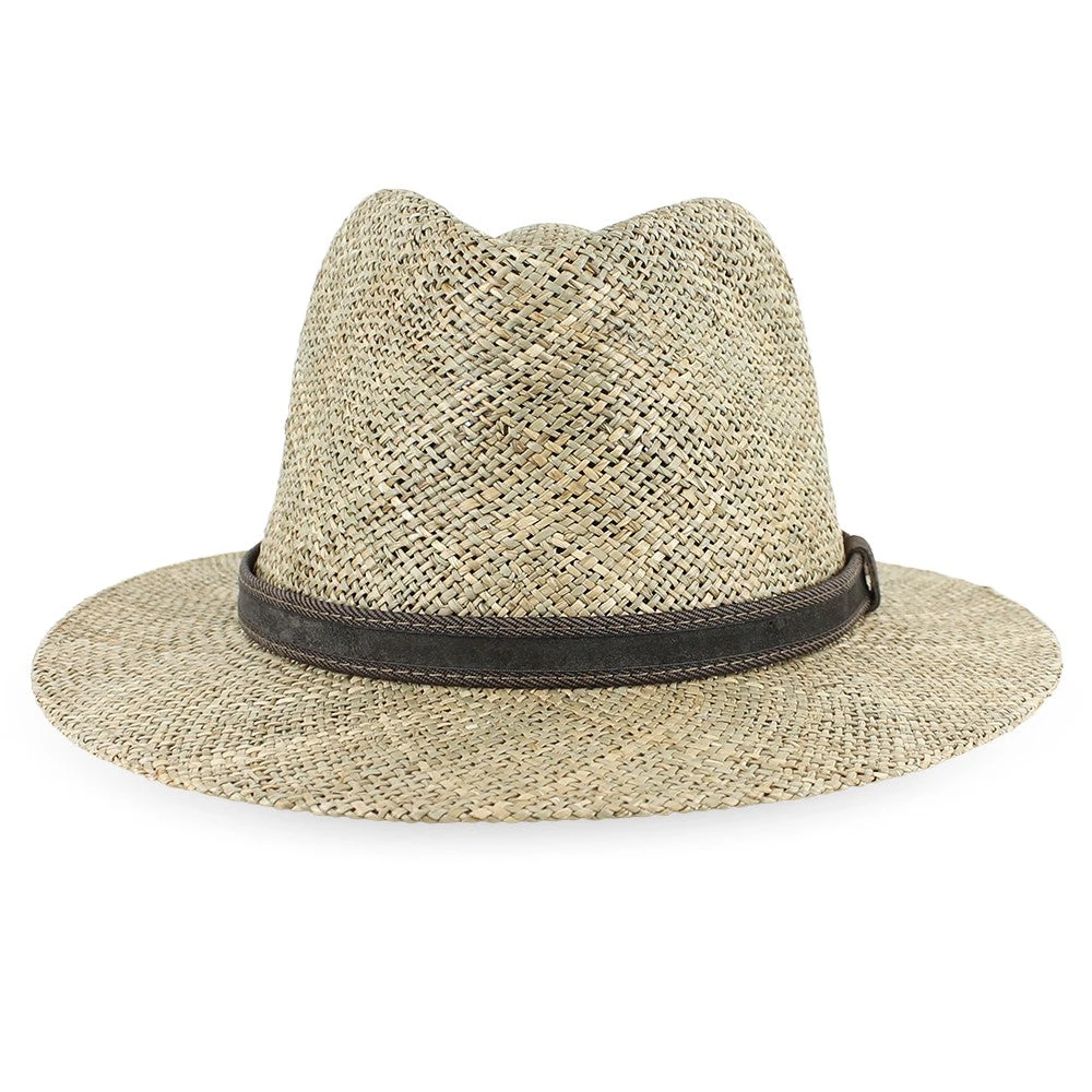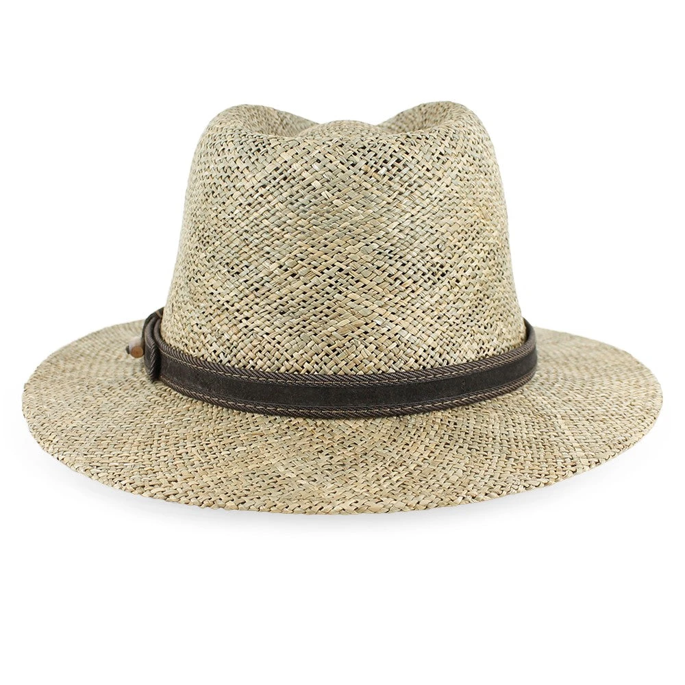 This stylish safari hat will display your confidence and adventurous spirit. Designed by Sorbatti Hats of Italy, the Belfry Tito is a casual style made of natural sea grass straw that has an open weave for cool, comfortable air flow. Sea grass is rarely bleached, so the natural colors show through and are complemented by the leather hat band.