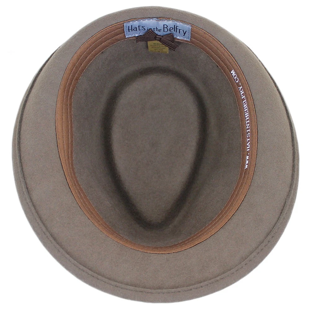 The Belfry Trilby is made of 100% wool felt that is durable, flexible and holds its shape. Although this hat is very affordable, great attention has been paid to the modern detailing and intricate woven hat band. The Belfry Trilby packs well with no wrinkling or creasing, for worry-free travel.Â