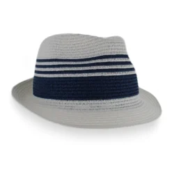 The Belfry Wyatt is a lightweight trilby made of Toyo straw. It sports a multi-striped crown and solid brim for updated style. It is flexible, durable and retains its shape for easy packing and travel.