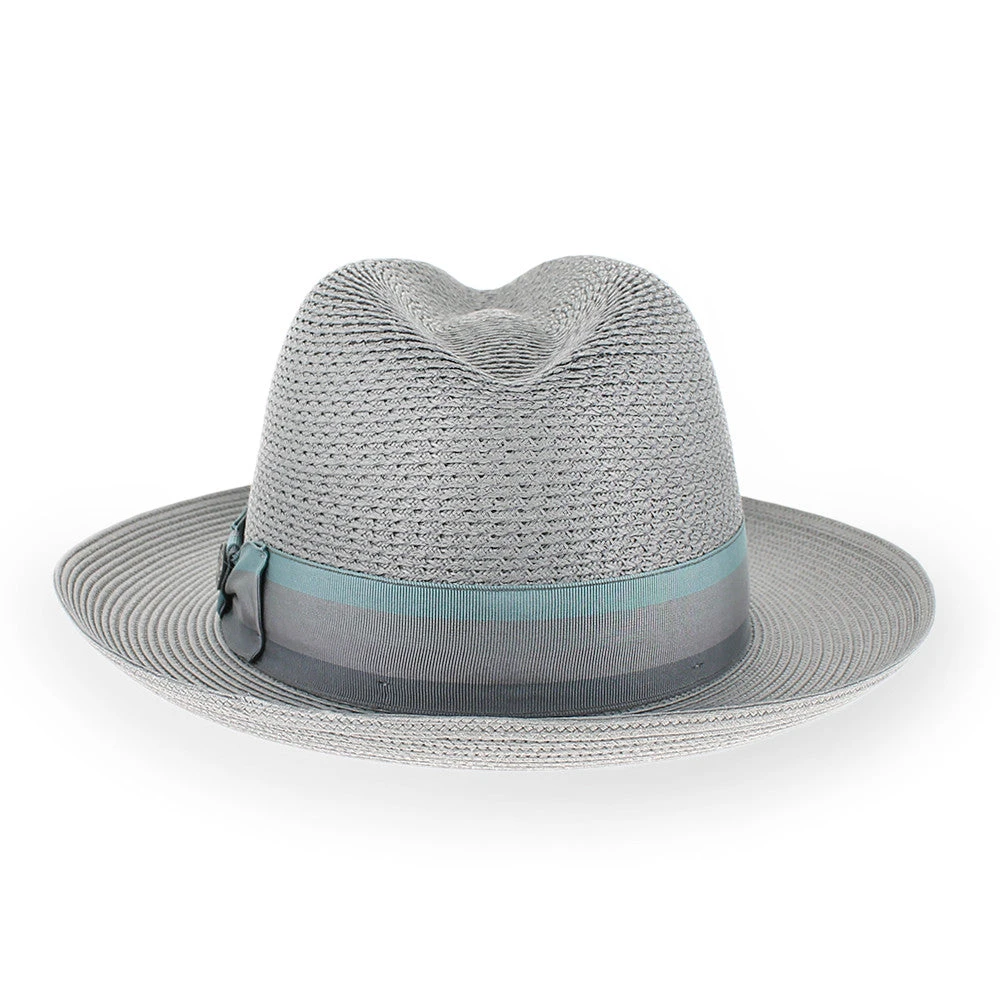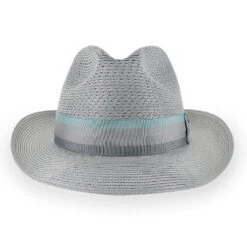 Designed in a soft summer grey, the Belfry Colvin is a subtle accessory for summertime wear. Made of woven poly braid straw, the Colvin is pliable, durable and comfortable enough for all-day wear. The center dent crown features an open weave which allows for air flow and the brim may be snapped up or down for two different looks. The unlined interior offers a German inner band that wicks away moisture. Handmade in the USA by Stetson, the Colvin showcases exemplary American craftsmanship.