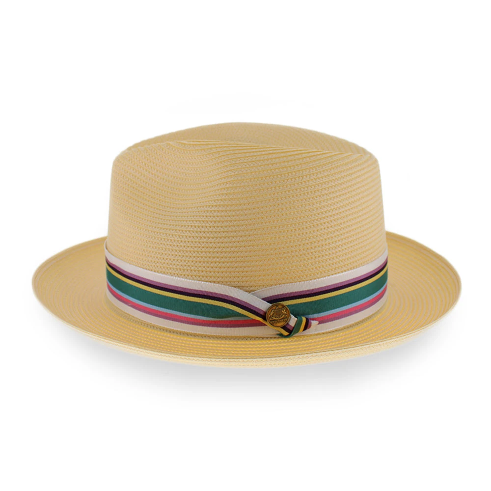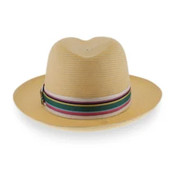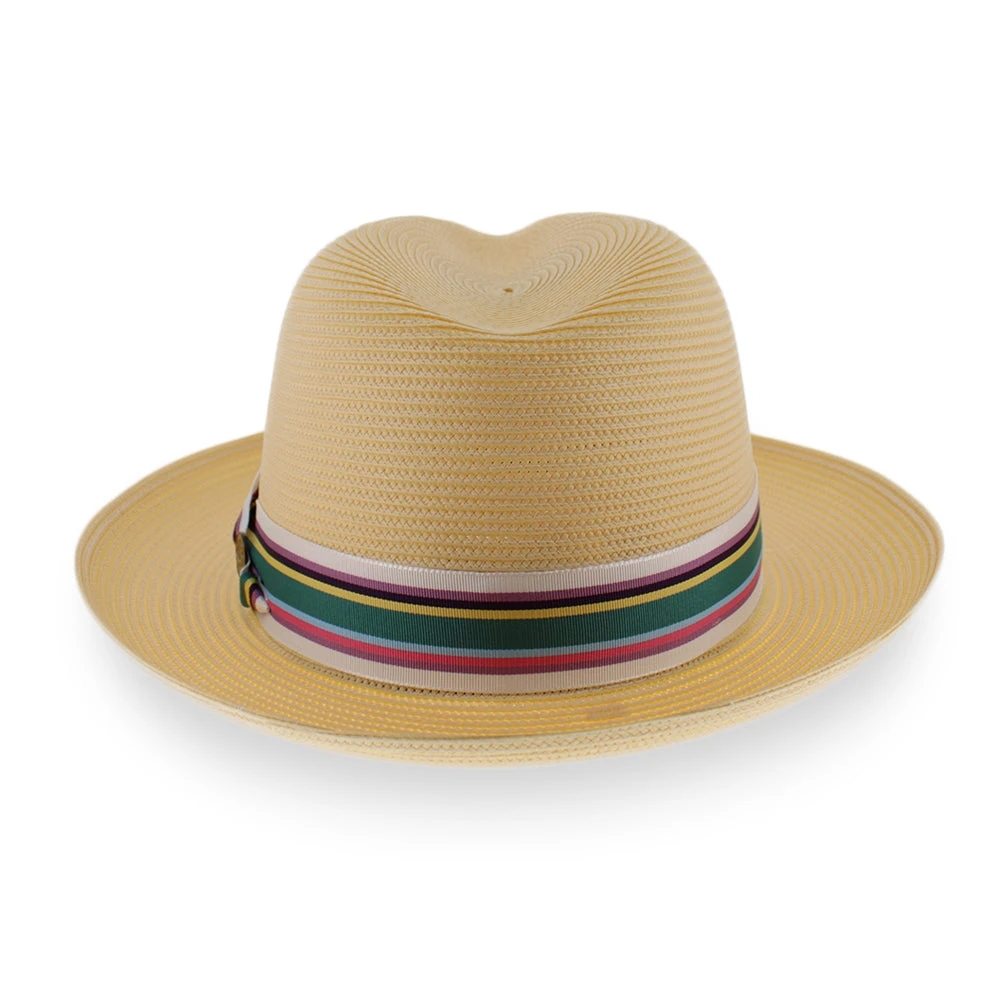 The Belfry Conrad offers modern good looks in a classic fedora silhouette! Made of lightweight poly braid straw, the Conrad is flexible and durable for all-day wear. The Conrad’s colorful club hat band updates this traditional fedora and is finished with a stylish pug-nose knot. Perfect for casual or dress, the Conrad will be a handsome addition to one’s warm weather wardrobe. Handmade in the USA, this handsome fedora features the finest quality craftsmanship!