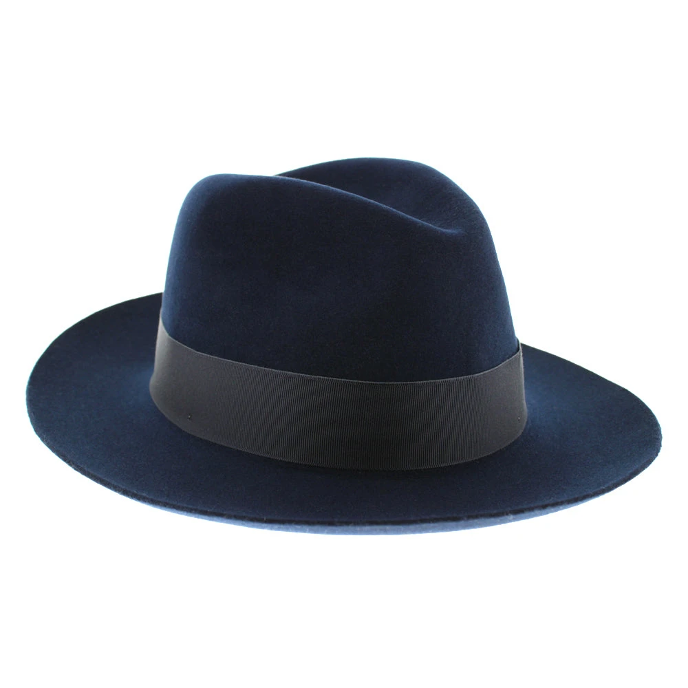 This classic fedora is made of 100% fur felt, a naturally water repellent and durable fabric. The Stetson Tru Blu is a true deep navy, rich in tone. The interior features a satin lining and a genuine cowhide leather inner band.