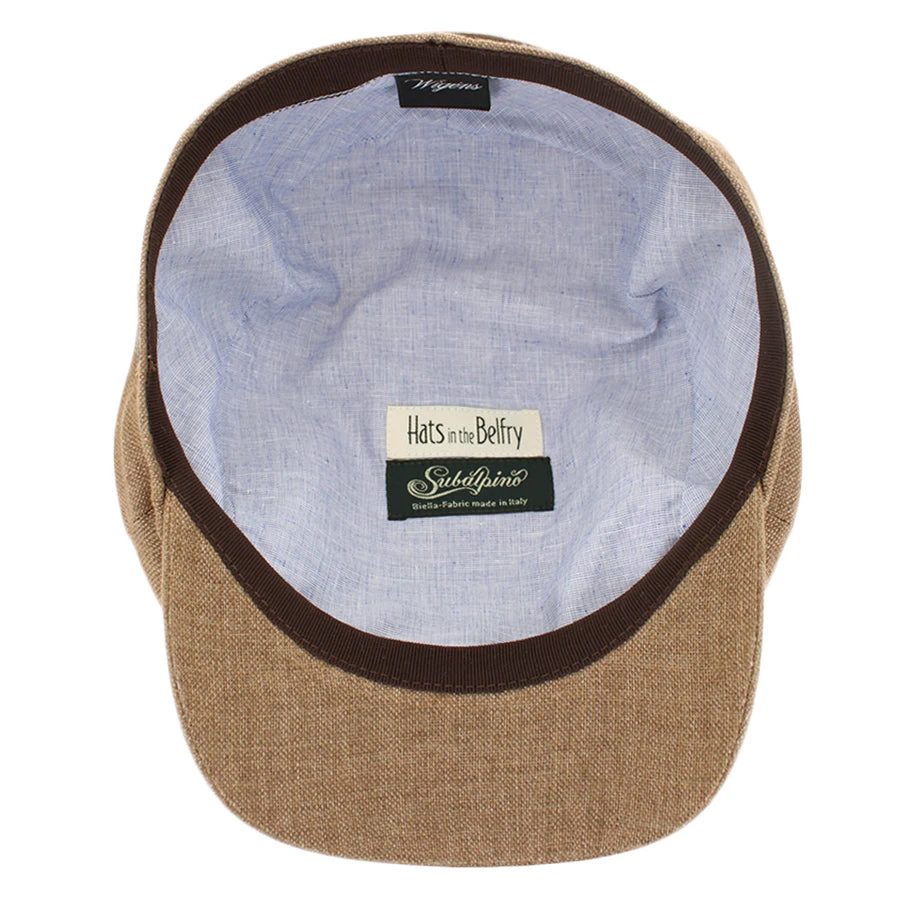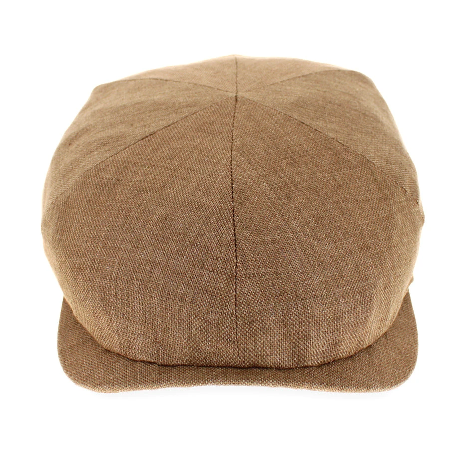 The Wigens Connor is a modern newsboy cap sewn with 6 panels and a slightly raised silhouette, but eliminating the top button. Made of 100% linen, the Connor is very lightweight and packable, making it a perfect choice for warm weather wear or travel.Â