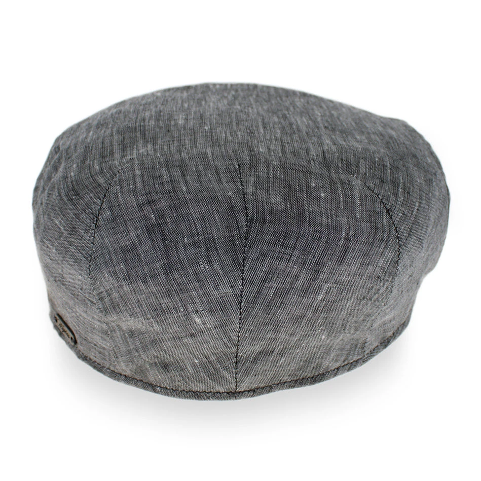 The Wigens Dean is a classic flat cap handmade of fine linen. It features a slightly longer peak than regular flat caps and offers a 2-inch sewn brim. The Dean is lightweight and packable, making it a perfect choice for warm weather wear or travel.Â