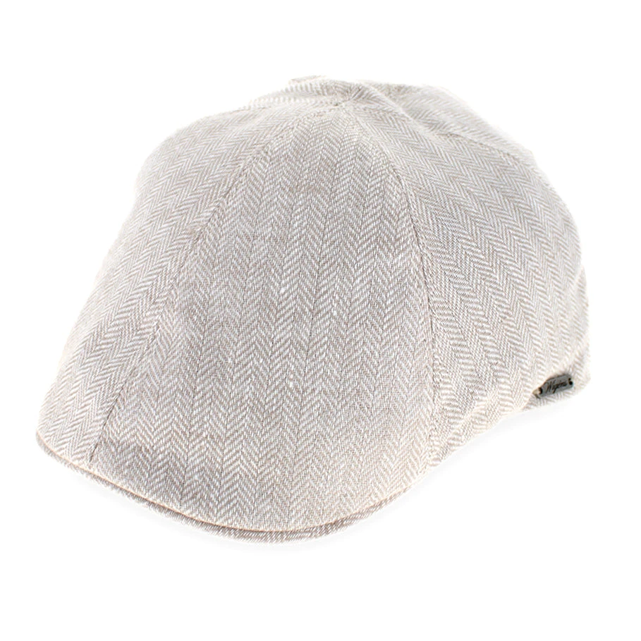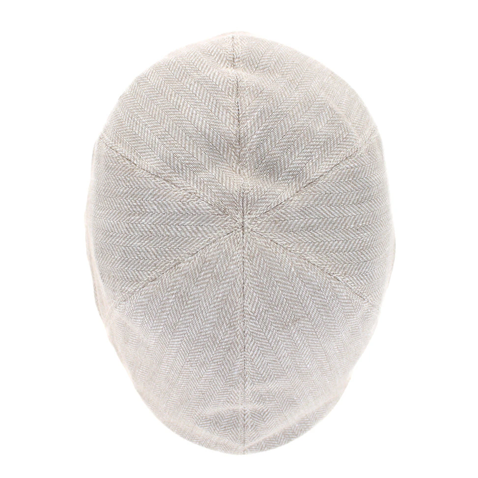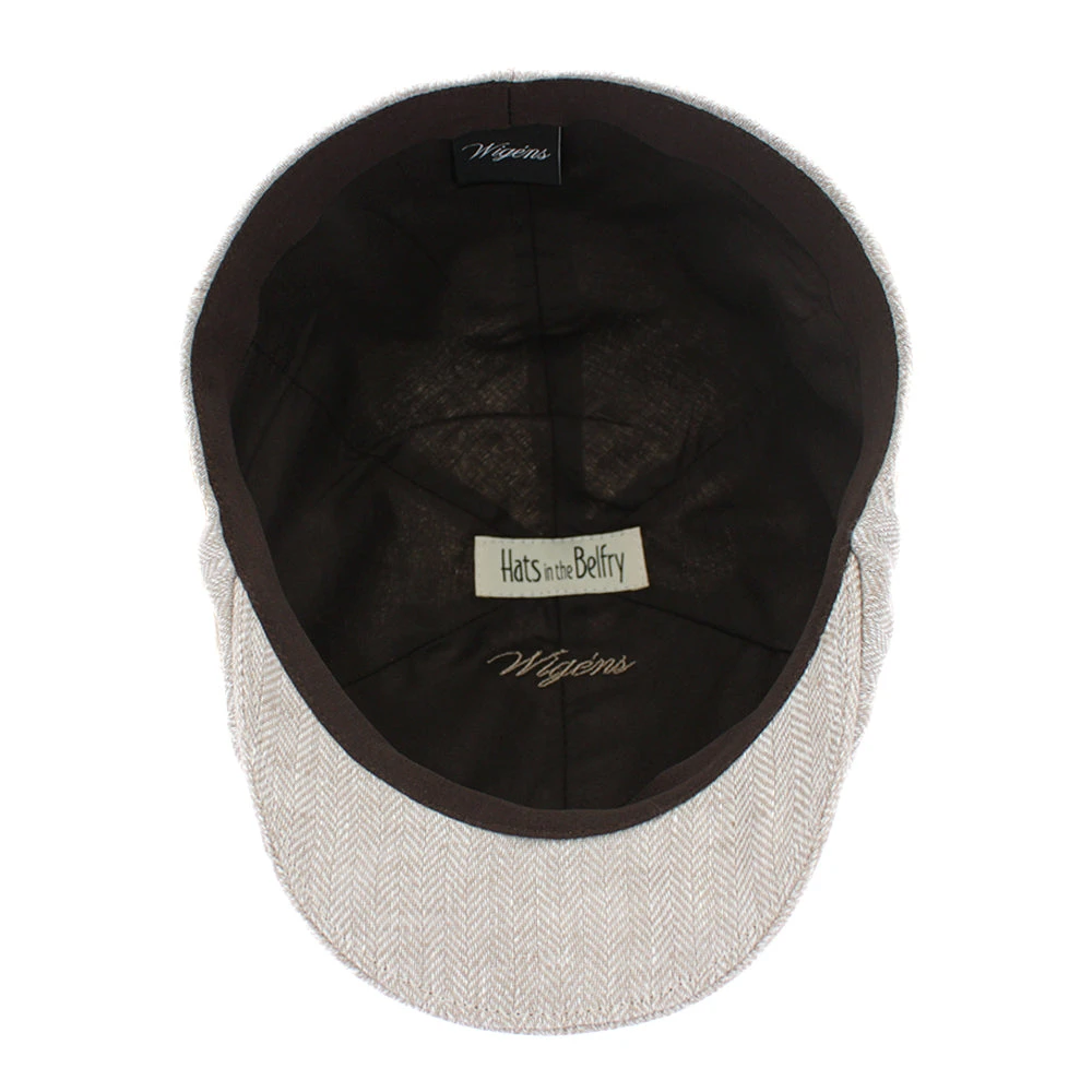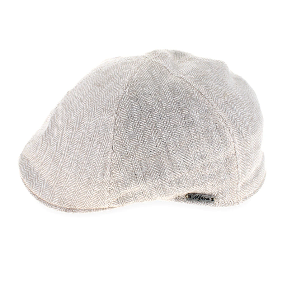 The Wigens Owen is a modern pub cap handmade of fine linen. The pub style features a slightly higher silhouette than a traditional flat cap, allowing it to sit lower on the head for a more comfortable fit. The Owen is lightweight and packable, making it a perfect choice for warm weather travel.Â